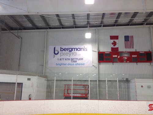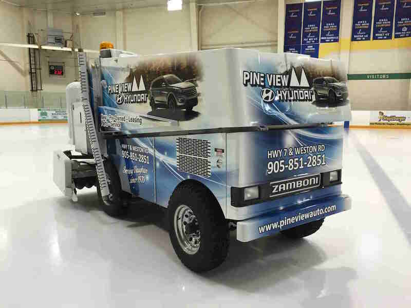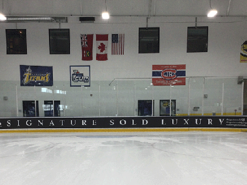 Or showcase your brand on rink boards, wall signage, backlit signage, clocks & scoreboards, ice resurfacing wraps, ice logs, stand-up lobby signage, and more.