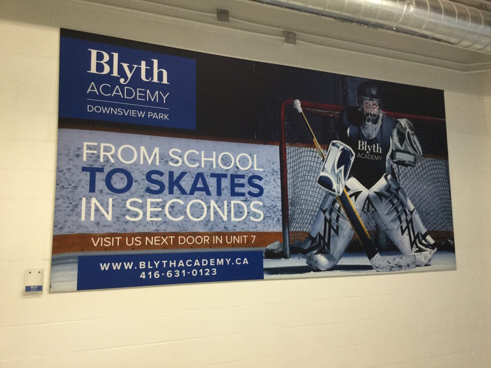 Wall signage advertising involves placing static advertisements on walls in high-traffic areas like lobbies and foyers of community centers and arenas. These ads are designed to be highly visible and engaging.