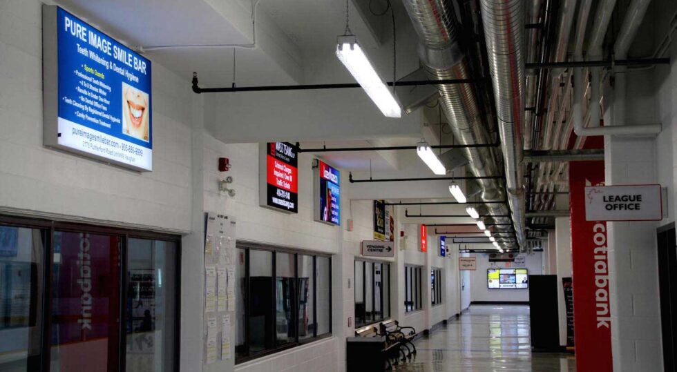 Static wall signage offers highly visible static advertising placed in key high-traffic areas of our community centers and arena facilities, such as lobby and foyer areas. This allows clients to attract new locally based customers through increased name and brand recognition. Banners and wall displays are versatile forms of communication, ensuring your signs are visible from a distance and capturing the attention of potential customers.